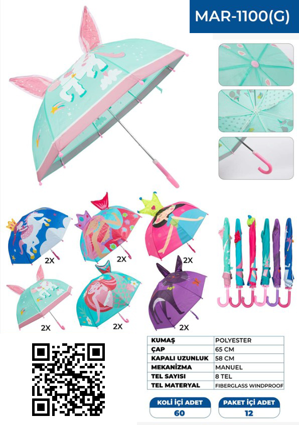 • MAR-1100-G Toptan Uygun Fiyat Çocuk Şemsiye